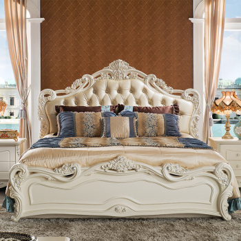• 商品名称:贝黎诗 欧式双人床1.8米 法式田园公主床 实木高箱床1.5米 卧室家具 8802床真皮雕花床尾框架