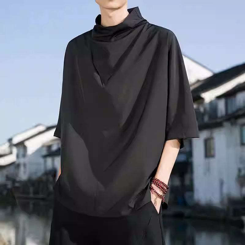 • 商品名称:中国风男装冰丝改良汉服新中式居士短袖T恤夏季宽松复古风茶禅服