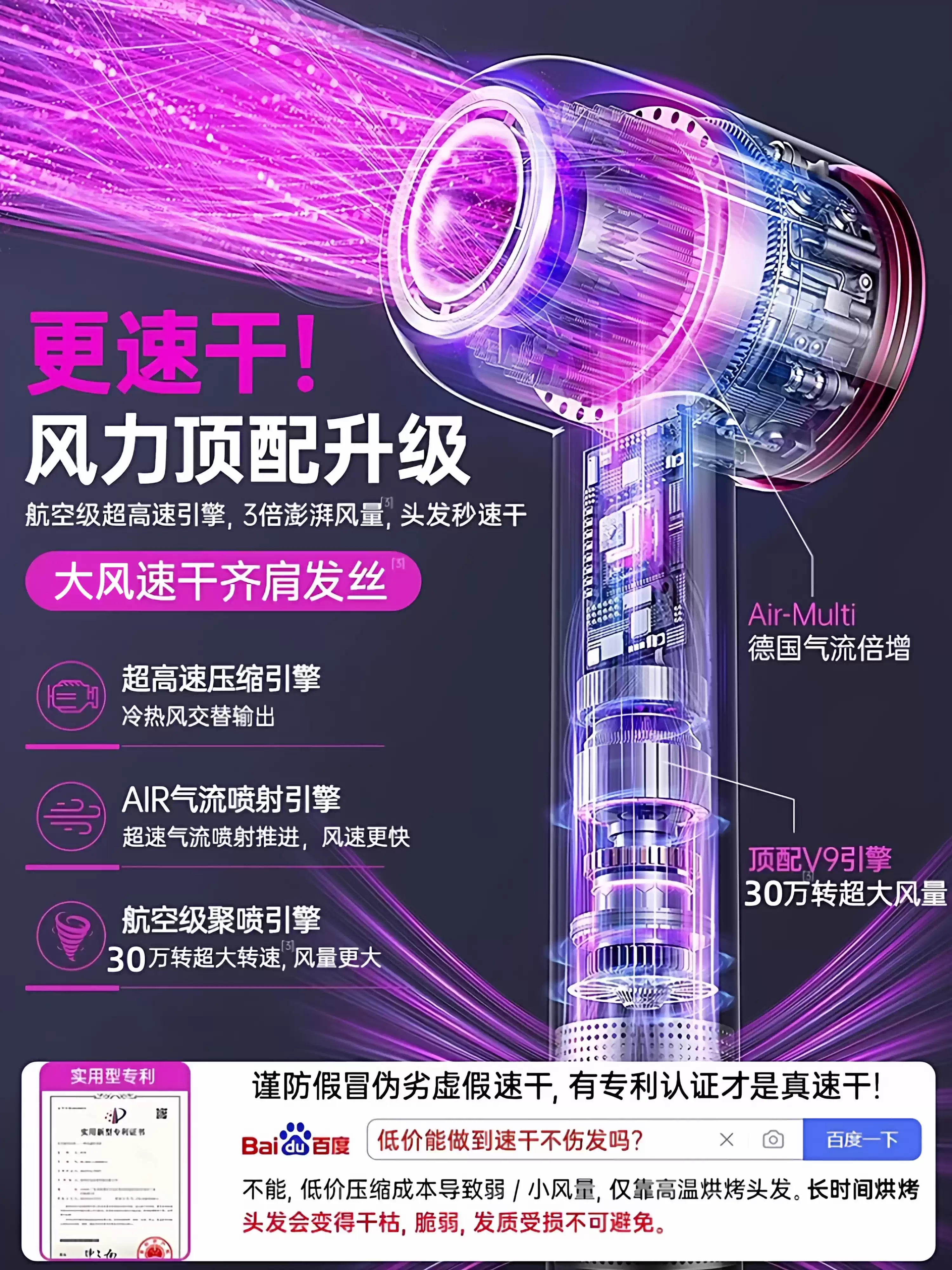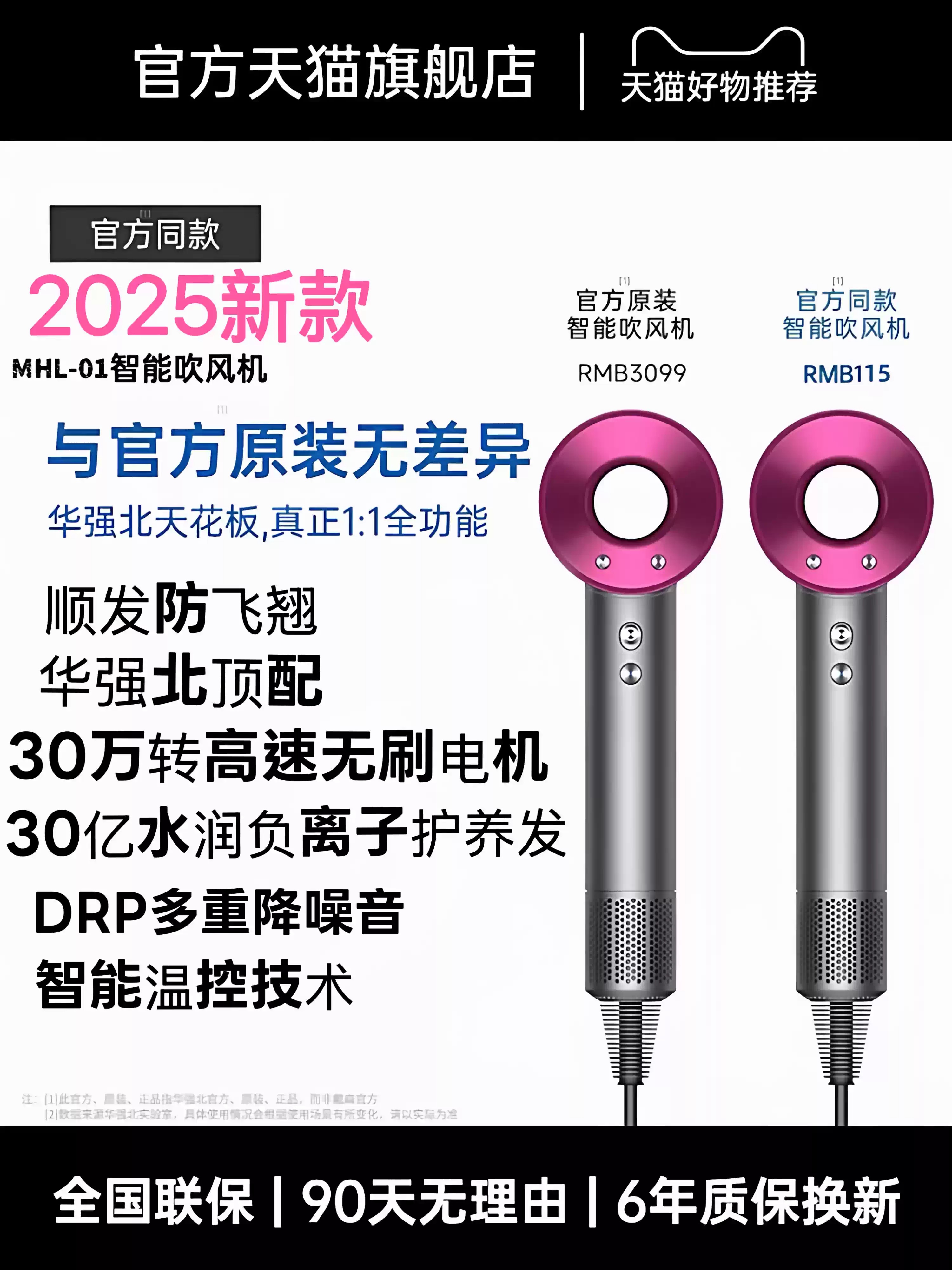 • 商品名称:电吹风机负离子护发静音速干家用大风强力2025新款华强北电吹风筒