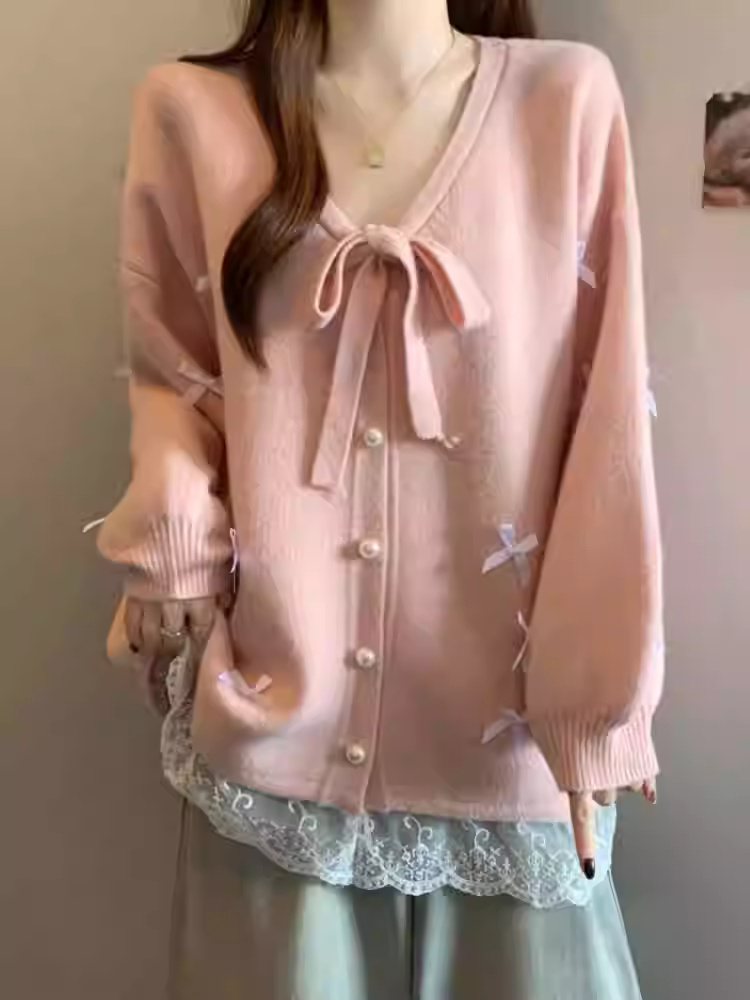 • 商品名称:大码胖mm秋季新款时尚蕾丝边长袖开衫毛衣宽松显瘦简约百搭上衣女