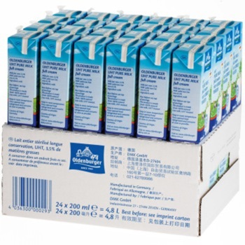品名:德国 进口牛奶 欧德堡(Oldenburger)超高温处理全脂纯牛奶200ml*24盒